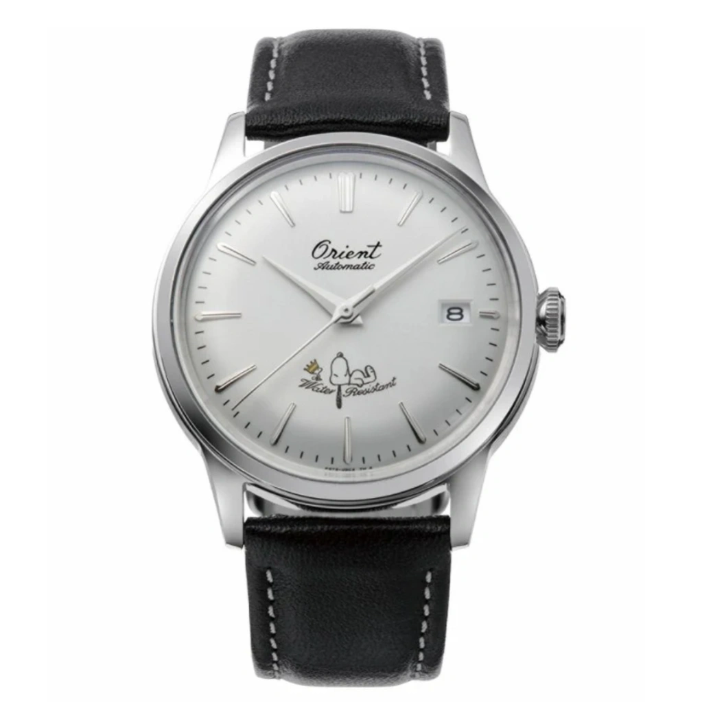 The Orient RA-AC0M16S Peanuts 75th Anniversary Limited Edition combines classic mechanical watchmaking with playful, collectible charm. Featuring Snoopy in his iconic sleeping position and Woodstock wearing a golden crown at 6 o’clock, this model brings a whimsical touch to a timeless design. The white dial, Orient’s cursive logo at 12 o’clock, and vintage-inspired styling make it both elegant and fun.